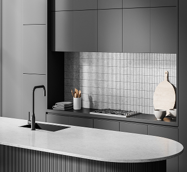 משטחי עבודה יוקרתיים משיש, גרניט או אבן טבעית.